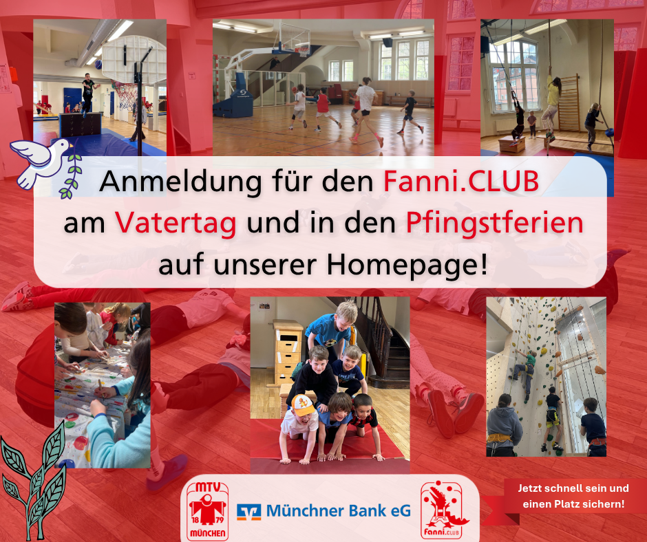 Mit großer Vorfreude blicken wir auf den Vatertag sowie die Pfingstferien – und natürlich ist auch der Fanni.CLUB wieder am Start! Euer Kind erwartet im MTV München ein abwechslungsreiches und sportliches Ferienerlebnis. Von Leichtathletik, Klettern und Fußball über Turnen bis hin zu kreativen Bastelworkshops und Parkour – unser Programm bietet für jedes Kind genau das Richtige.