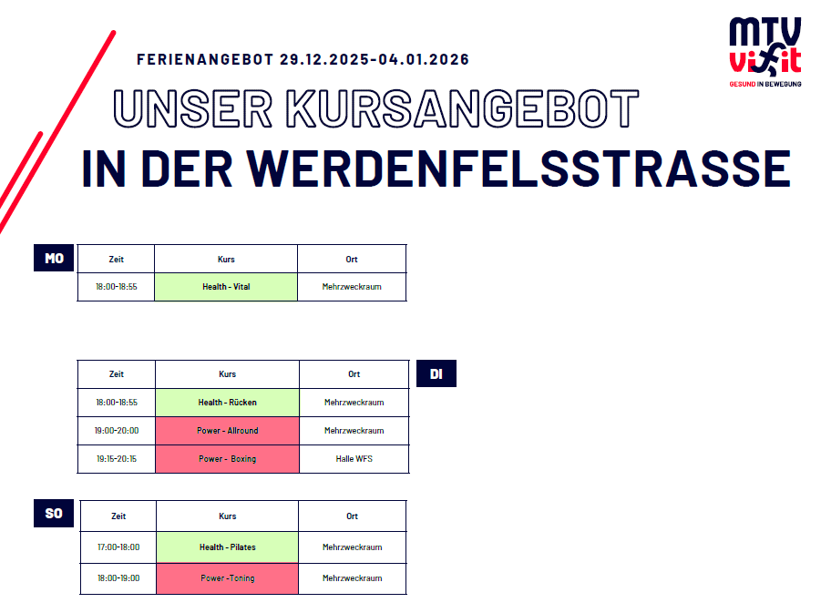 | Montag 18 Uhr, Health - Vital | Mittwoch 19:35 Uhr, Power - Modern Dance | |