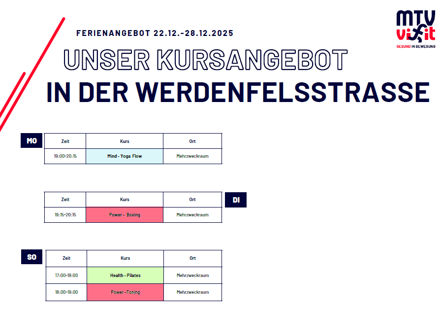 | Montag 19:15 Uhr, Power - Flow | Donnerstag 19 Uhr, Power - Thai Fit | |